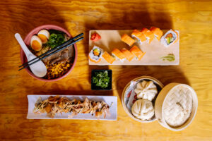 Un pedacito de la cultura japonesa servida en un plato de ramen; aquí tú eres el chef (o no) arma tu ramen a tu gusto; si tienes ganas de algo más fresco pídete el sushi cubierto de salmón y para picar las gyozas crujientes.